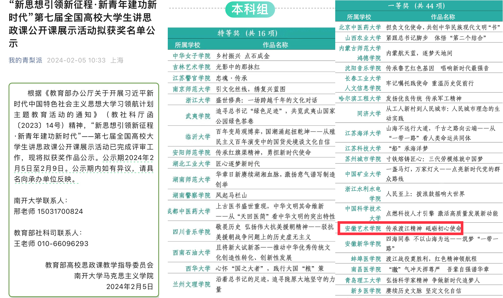 此次获奖,是继2023年我校学生团队作品连续获得两届全省高校大学生讲思政课特等奖后的新突破,展现了安艺学子扎实的理论素养和良好的精神风貌,彰显了学校思政课改革创新的成效。
