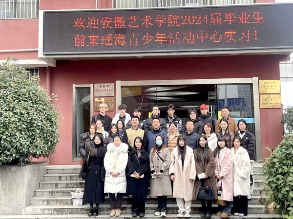 (合肥市瑶海青少年活动中心用电子屏表达对我校实习生的欢迎)