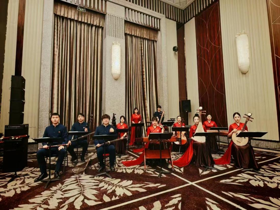 我校音乐学院“文艺轻骑兵”携民乐教师团队受邀表演,通过《迎宾曲》《黄梅调》等经典曲目演绎徽风皖韵,精湛的演奏在中外嘉宾中反响热烈,成为彰显安徽文化魅力的艺术名片。