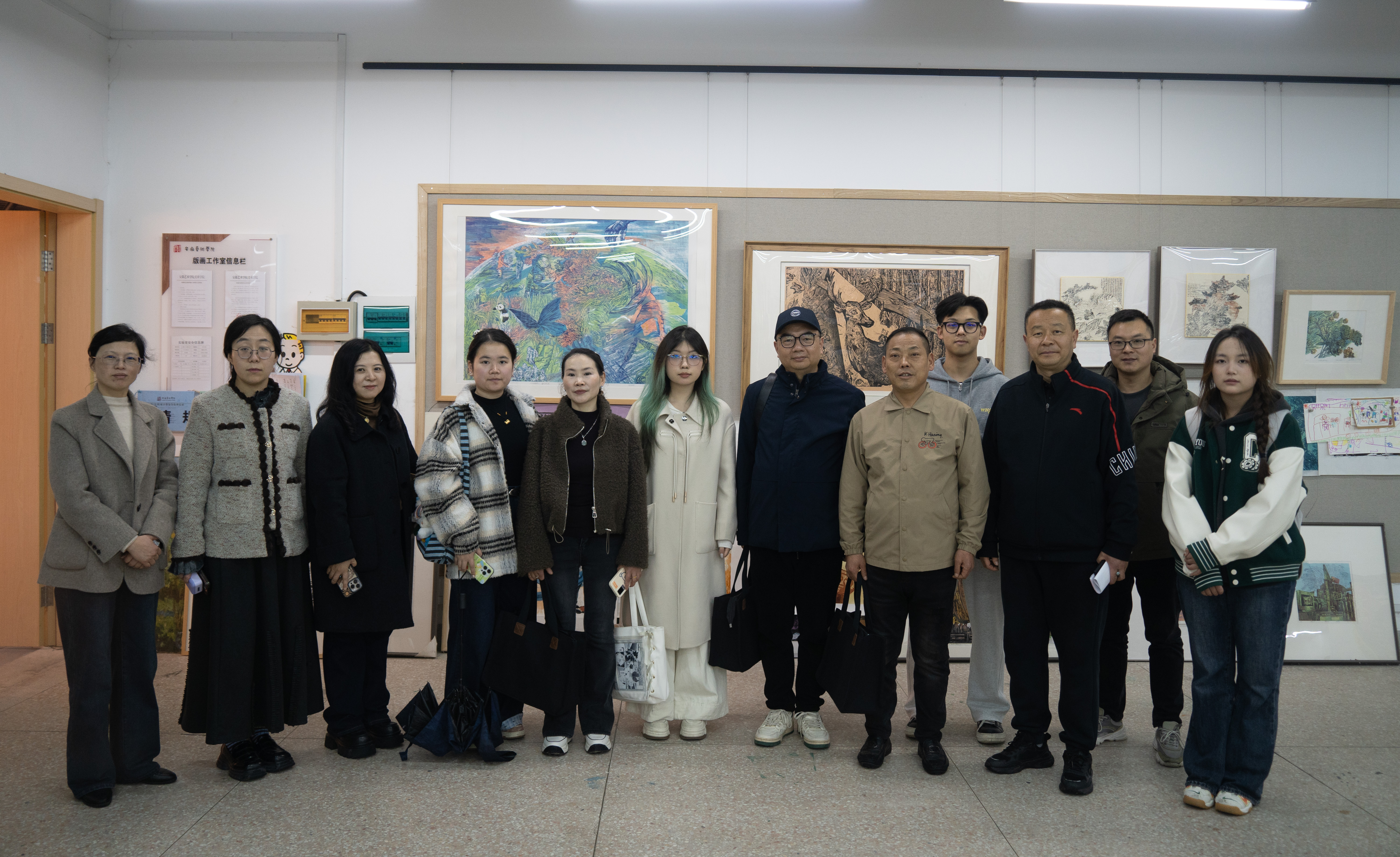在学校美术馆,家长师生一同参观第四届“盛日寻芳”学院女教师暨安徽省美术家协会巾帼画会女画家作品联展,展厅内215件作品涵盖了国画、油画、版画、雕塑、水彩、设计、民间美术、综合材料等多个艺术品类。学生管理科科长王力平为大家进行细致讲解,生动呈现了学校美育丰硕成果。