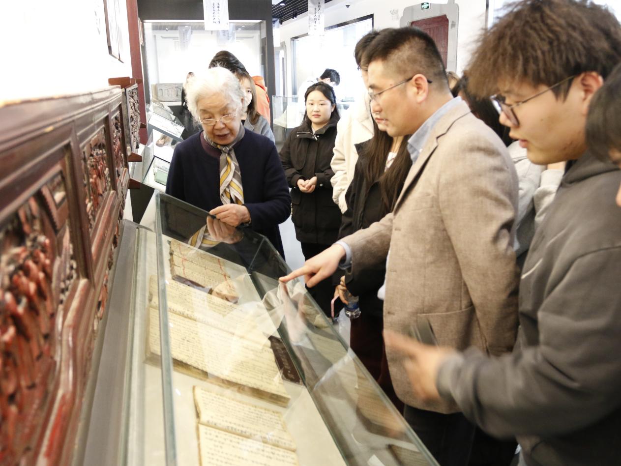 池州戏曲文化底蕴深厚,其中青阳腔于2006年5月被列入第一批国家级非物质文化遗产名录。青阳腔产生于嘉靖年间,由弋阳腔与当地语音、民歌小调融合而成,被誉为京剧“鼻祖”之一。师生一行来到青阳腔博物馆,听82岁的国家级非物质文化遗产青阳腔省级传承人、二级演员江进讲述青阳腔的发展历史以及与黄梅戏的渊源。江进细致地讲解和细腻地表演让师生们真切感受到了青阳腔的魅力。