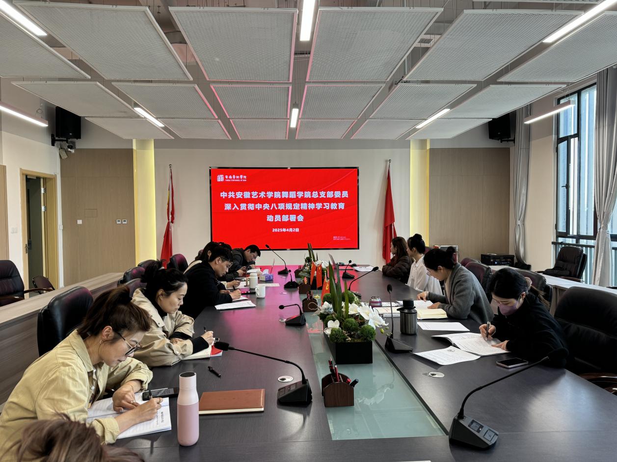 根据学校党委部署要求,4月2日下午,舞蹈学院召开专题会议,对扎实开展深入贯彻中央八项规定精神学习教育进行动员部署。会议由舞蹈学院党总支副书记徐芳主持。