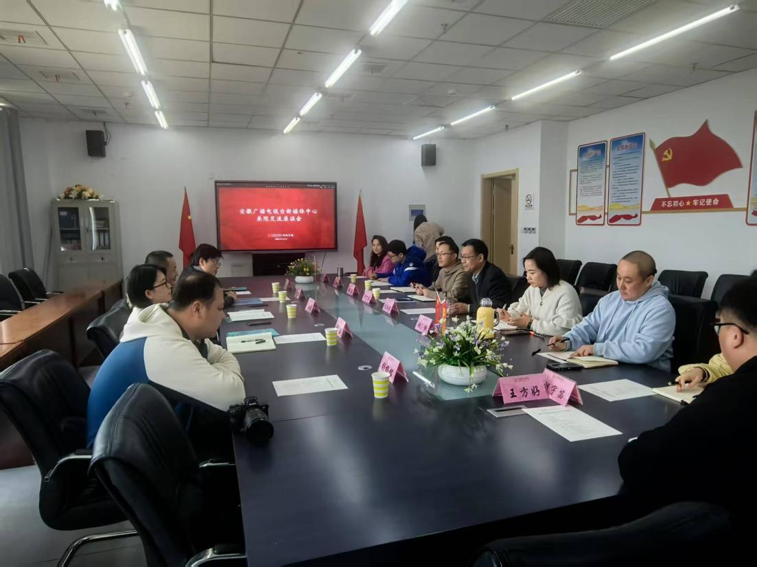 近日,安徽广播电视台新媒体中心副总监卢小豆一行到戏剧学院调研交流。戏剧学院特聘院长纪永贵,校党委宣传(统战)部副部长尹广富,戏剧学院党总支副书记、副院长曹磊,副院长张静、杨超及相关教师代表参加会议。