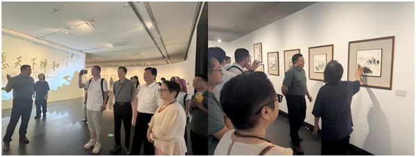 活动特邀罗耀东教授现场授课,从中国山水画的意境、书法欣赏要领、艺术家的修养三个方面进行了详细讲解。老同志们驻足欣赏郭因先生创作的222幅书画作品,从行云流水的书法墨宝到意境深远的山水小品,每一幅作品都引发热烈讨论。大家纷纷感慨道:“郭老以百岁高龄仍保持旺盛的创作力,这种对艺术的执着追求让我们深受触动,此次参观既是一场视觉盛宴,更是一堂生动的人生课。”