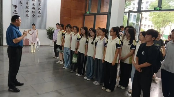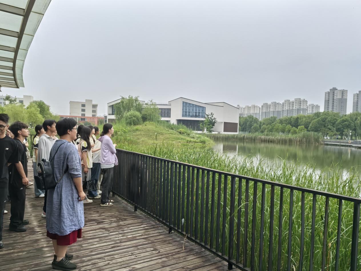 在校园参观之旅中,陈明化身“艺术导游”,耐心细致地为同学们介绍校园里的每一处特色景观。从徽派建筑的“形与色”到徽州园林的“山和水”,从牌坊的悠悠古韵到艺馨湖的漾漾清波,从崇德楼的“黑白键”窗户到美术楼的“山峦线”屋顶……同学们漫步校园,用眼睛捕捉着细节,用心感受着不同艺术的美。