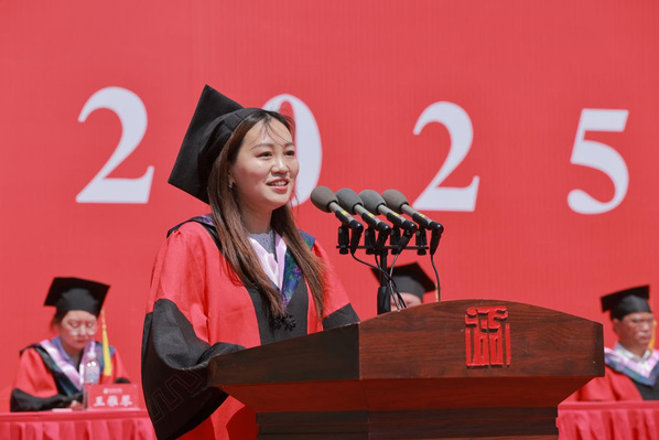 柳友荣在致辞中代表学校向圆满完成学业的2025届毕业生表示衷心祝贺和美好祝愿。希望同学们能坚守责任,敢于担当,无论在什么工作环境里少问“凭什么是我”,多问“我能点燃什么”,能为身边的人、身边的环境做些什么。希望大家能保持正能量,播撒阳光。在未来的生活中,少一些抱怨,多一些宽慰;少一些苛责,多一些鼓励。希望大家能心存感恩,回馈社会。未来同学们将会发现,“给予”带来的幸福远胜于“索取”带来的满足。你们成长在飞速发展的时代,世界之变、时代之变、历史之变正以前所未有的方式展开,希望大家能保持学习心,拥有学习态。千言万语,期待毕业的同学们能够健康幸福地生活,请相信母校与你们共同成长。相信有一天,母校会成为你的强大背书,而你也成为母校的名片和骄傲。