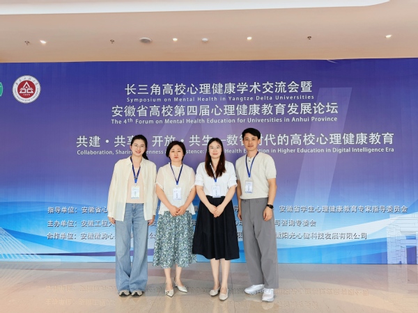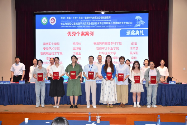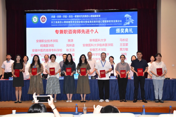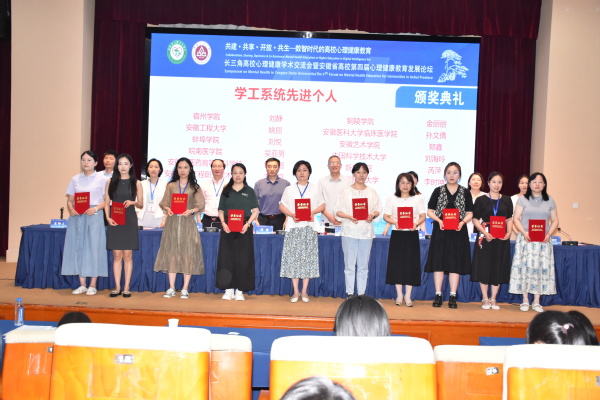 6月27日至28日,长三角高校心理健康学术交流会暨安徽省高校第四届心理健康教育发展论坛在芜湖召开。论坛颁奖会上,我校刘长华、郝驰原撰写的心理工作案例荣获省级优秀工作案例、心理专职教师武琪敏撰写的心理个案荣获省级优秀个案案例,郑鑫和贾方敏两位教师分别获评学工系列和咨询师系列“安徽省先进个人”。