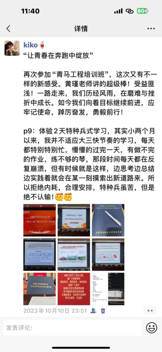 站在时间转角处回望来时的路并不平坦,但言此行值得。在安艺求学的这段时间,是我艺术生命扎根、萌芽的关键时期。学校提供的实践平台、师长们无私的关爱与专业的引领,是我能够快速成长、最终坚定选择考研并取得阶段性成果的基石。无论未来走向何方,“崇德尚艺 知行合一”的校训和安艺给予我的这份温暖力量,都将伴随我在艺术的道路上继续勇敢前行。感恩母校,感恩每一位点亮我梦想的安艺人。