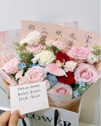 毕业展上,肖梦楠为罗老师献上一束鲜花,并附上手写祝福:“幸得美人师,润我细无声。愿师韶华,常如初见。岁岁安康,喜乐长安。”这份师生情谊也延续到了艺术传承中:罗老师赠予她一支毛笔,鼓励她继续在绘画道路上深耕。微风轻拂,阳光洒在师生二人身上,那一刻,教育的温度与艺术的未来,在这支毛笔中悄然延续。