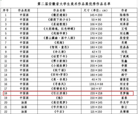 今年6月24日,2025届中国画专业肖梦楠的毕业作品《引江济淮》在第二届安徽省大学生美术作品展中荣获优秀作品奖。这幅作品的诞生,是一段关于师生情、家族记忆与艺术坚持的动人故事。