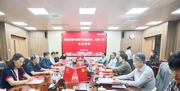 9月23日,安徽外国语学院董事长、校长周之虎一行来我校调研交流,校党委副书记、校长柳友荣热情接待,双方就音乐表演、舞蹈表演等专业建设合作展开深入探讨。