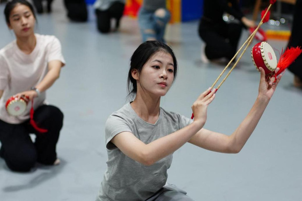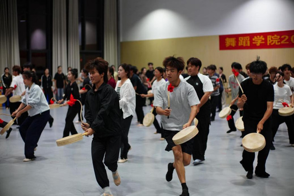 在舞蹈教室里,来自海南的2025级舞蹈表演专业学生王星正和同学们进行每晚两小时的花鼓灯舞蹈训练。“第一次接触安徽花鼓灯,我就被它的魅力征服了。”王星兴奋地说。与她熟悉的中国古典舞风格不同,花鼓灯俏皮、轻盈,需要运用特定的道具和节奏。