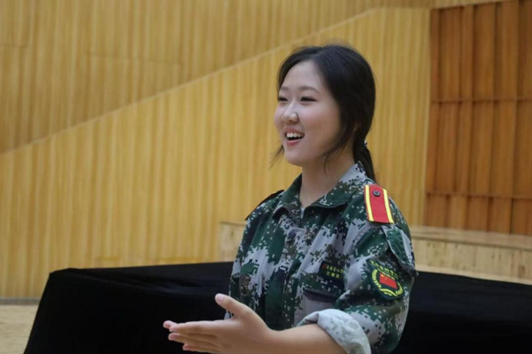 在二十二连,2025级数字媒体艺术专业的程子芸同学也在感受着集体的温暖。训练时,她常常难以听清指令,动作总是慢半拍,跟不上队伍的节奏。但教官和同学们始终耐心陪伴,身旁的队友提醒她多用余光观察动作,在她没听见呼唤时及时提醒。这些细碎却真切的帮助,让她感受到了集体的善意与温暖。