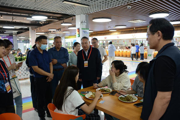 检查组一行实地走访食堂前厅、售餐窗口、师生用餐区等关键区域,重点围绕环境卫生清洁度、食材储存与展示窗口、操作人员规范流程等核心环节进行细致检查,同时就日常运营管理情况、环境卫生、食品安全管控等关键工作与食堂负责人深入交流,并提出意见和建议。检查期间,陈文兵主动与就餐师生亲切交谈,耐心倾听大家对菜品种类、售卖价格以及工作人员服务态度等方面的真实反馈和改进建议。