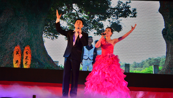 本台晚会,我院除在构思、策划、导演、灯光、舞美、语言类节目编创、舞蹈编排、声乐指导、主持等方面给予全程指导外,还编创演出了7个节目。包括周爱宝教授、常昕老师演出的小品《我要上岳晚》,邹荣学、曹磊、秦帅、于松洁老师创作表演的小品《同桌的你》,杨超、阚侃老师表演的相声《谁不说咱岳西好》。这三个贴近生活、贴近实际、贴近群众的曲艺节目赢得在场观众的阵阵掌声。胡曦雯、朱泽军老师表演的二胡独奏《赛马》,马标老师参与演出的对唱《祖国万岁》,冯传胜、张志云老师创作指导的诗朗诵《家乡》赢得广泛赞誉。孙来法教授、曹晓燕副教授合作的对唱《高歌向明天》作为压轴节目,将晚会推向高潮。常昕老师、2015级播音与主持艺术专业专升本学生李超共同参与主持了整台晚会。