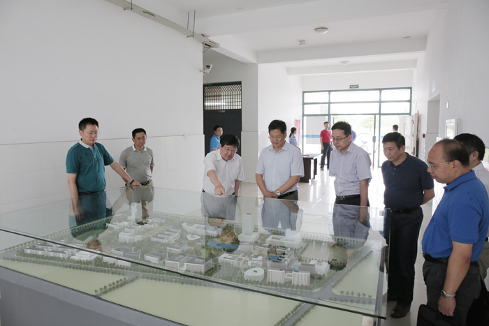 王佩刚一行首先查看了新校区基本建设规划沙盘,听取了校园整体规划介绍。
