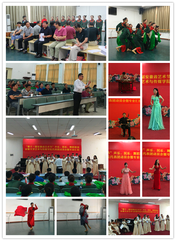 8月18日下午,“第十一届安徽省艺术节”学院艺术展演代表团动员会暨专业汇报在一号楼第二阶梯教室举行。学院党委书记、院长周之虎,副院长张晶及专家代表胡献平、周爱宝、韩大国,音乐舞蹈系相关负责人及全体演职人员参会,会议由副院长张晶主持。