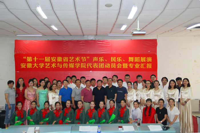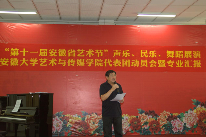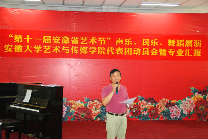 副院长张晶宣布成立“安徽大学艺术与传媒学院艺术展演代表团”。张晶指出,学院艺术展演代表团的成立是参演工作有序进行的保障,此次参加“第十一届安徽省艺术节”,对展示师生的艺术风采,促进文化繁荣,提升学院社会服务水平都将起到积极的推动作用。