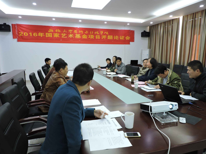 2016年11月3日,学院2016年国家艺术基金项目中国画《黄梅艺术的春天》和儿童剧《小草的春天》在三楼会议室召开开题论证会,会议由科研处处长韩大国主持。