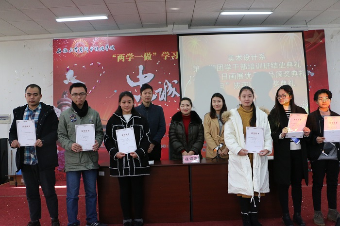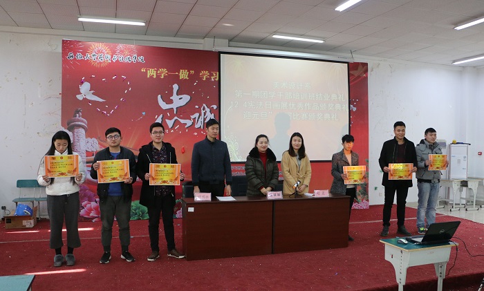 12月30日中午,美术设计系举行第一期团学干部培训班结业典礼暨12.4法制宣传周美术设计作品展颁奖典礼和“迎元旦”拔河比赛颁奖典礼。美术设计系党总支副书记张丽丽、学生党支部书记叶明胜、团总支书记赵晨出席会议,系学生会、团总支全体成员,各班班长、团支书参会。