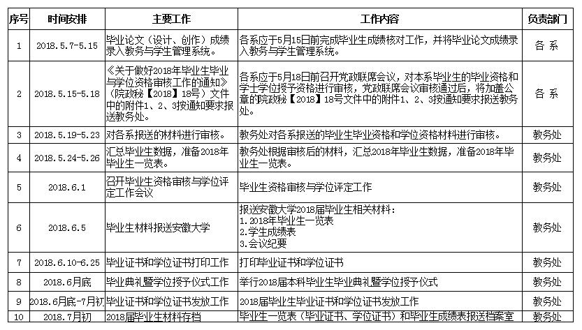 2018届毕业生相关工作时间表