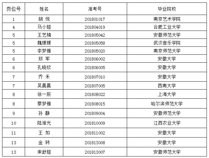 附表:安徽大学艺术与传媒学院2018年公开招聘拟聘人员公示名单