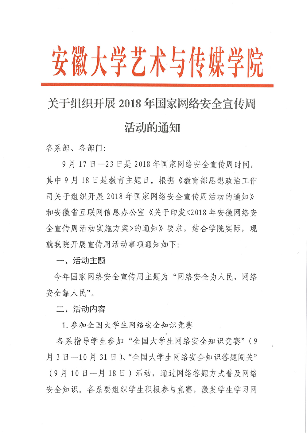 关于组织开展2018年国家网络安全宣传周活动的通知
