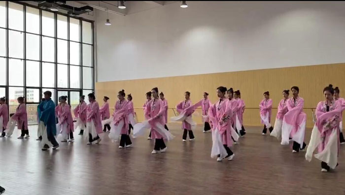 3月26日,梨园汇戏曲剧社在音乐舞蹈楼106教室开展“青春舞激情 戏曲传欢畅”排练活动,汪晓明、董兆和、洪安庆、宦丽华、李恋、徐向荣、徐秀芳等指导教师出席指导学生们的排练。