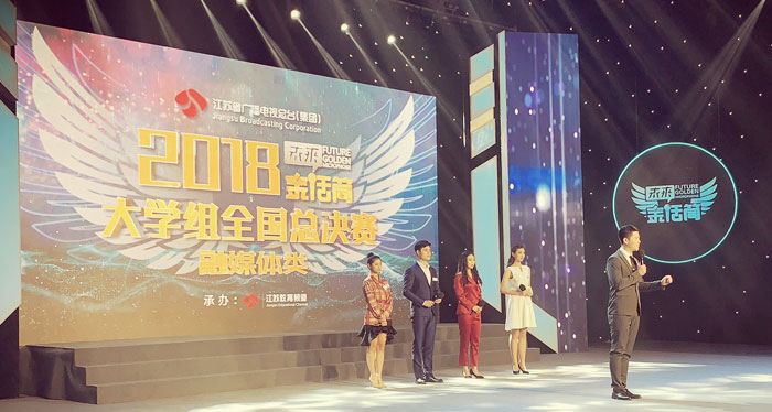 近日,由江苏省广播电视总台(集团)举办的“2018未来金话筒大学生主持人大赛·融媒体主持”全国总决赛落下帷幕,我院新闻播音系学生张昊同学荣获全国三等奖。