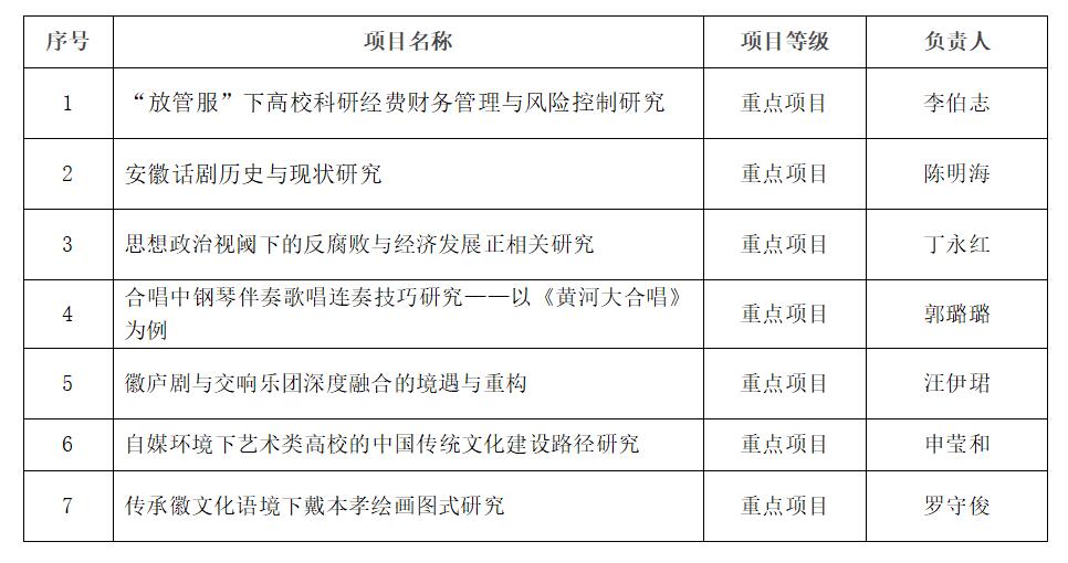 安徽大学艺术与传媒学院2019年省级自然科学项目评审结果