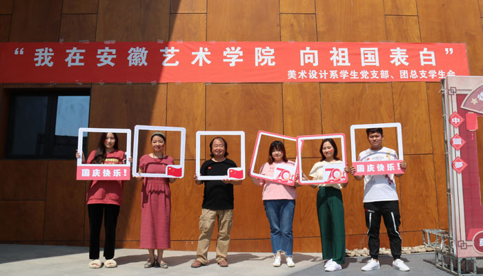 为庆祝中华人民共和国成立70周年、增强同学们的爱国情怀和集体荣誉感,9月30日,美术设计系学生党支部、团总支学生会联合举办“我在安博开户中国有限公司,向祖国表白”主题活动,在美术楼门前掀起一波爱国热情。