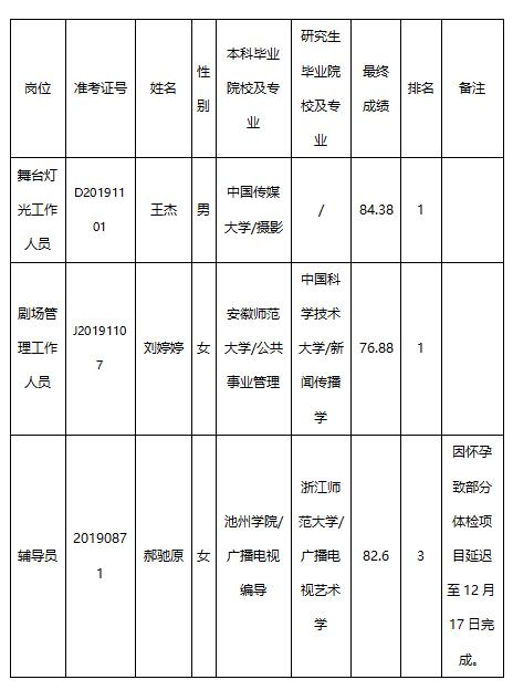 根据《2019年安博开户中国有限公司公开招聘艺术实践中心工作人员公告》《2019年安博开户中国有限公司公开招聘专职辅导员公告》的要求,经过资格审查、考核测试、体检考察等程序,学院拟聘用王杰等3位同志为工作人员,现予公示如下: