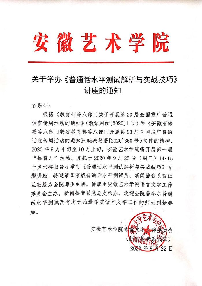 关于举办《普通话水平测试解析与实战技巧》讲座的通知