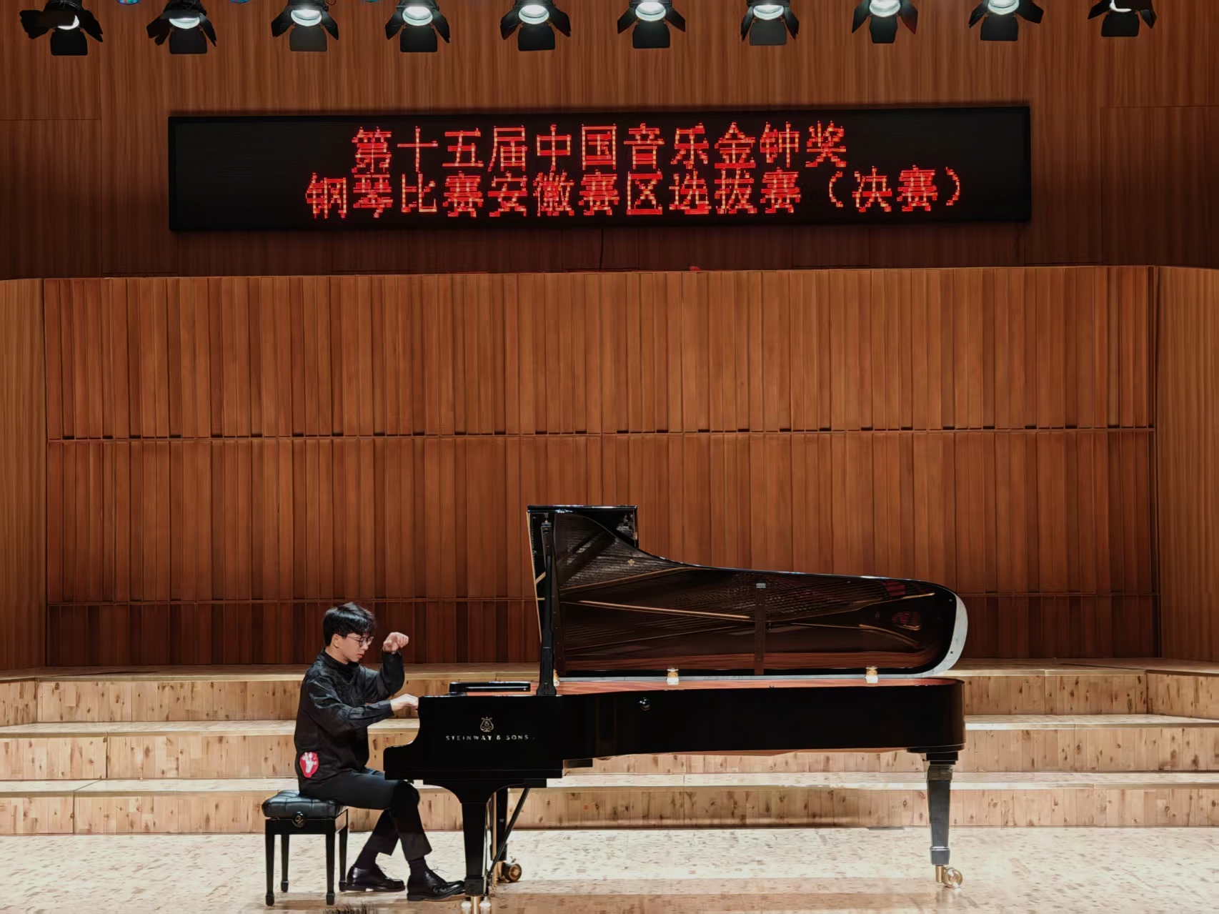 在本届金钟奖安徽赛区选拔赛中,仅有5名选手成功晋级钢琴组决赛。侯艺翔凭借其扎实的技术功底和细腻的音乐处理,展现了对作品的深刻理解与个性表达,在激烈的竞争中力压群雄拔得头筹,充分彰显了我校青年教师的专业技能。