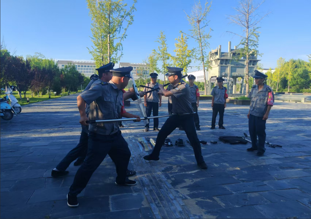 821日下午,我校安保公司品质部张军伟在安全管理处办公室给保安开展岗位技能知识培训和南门广场开展反恐防暴知识培训及演练。