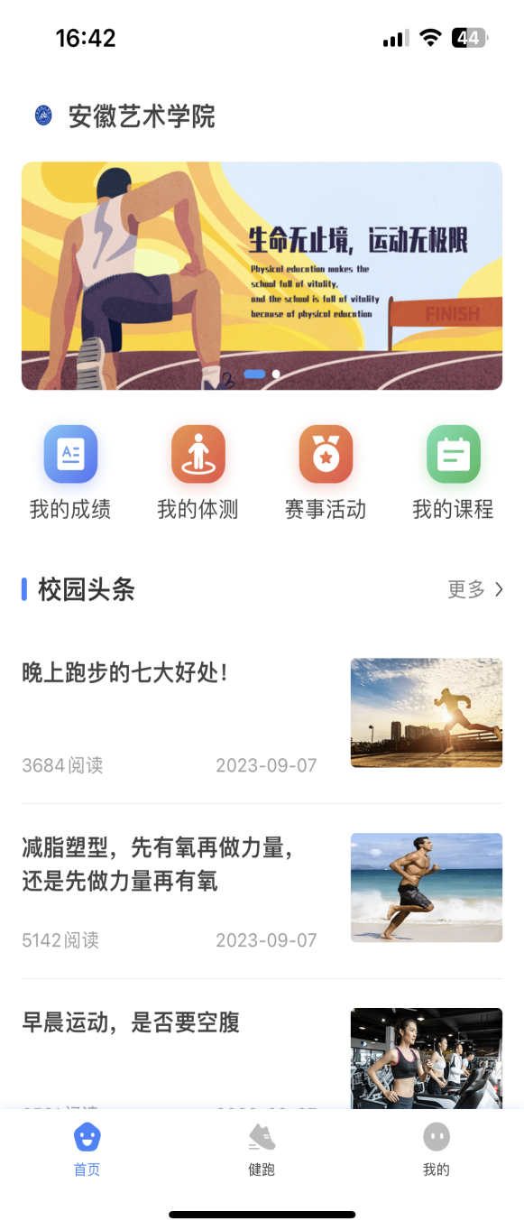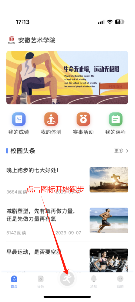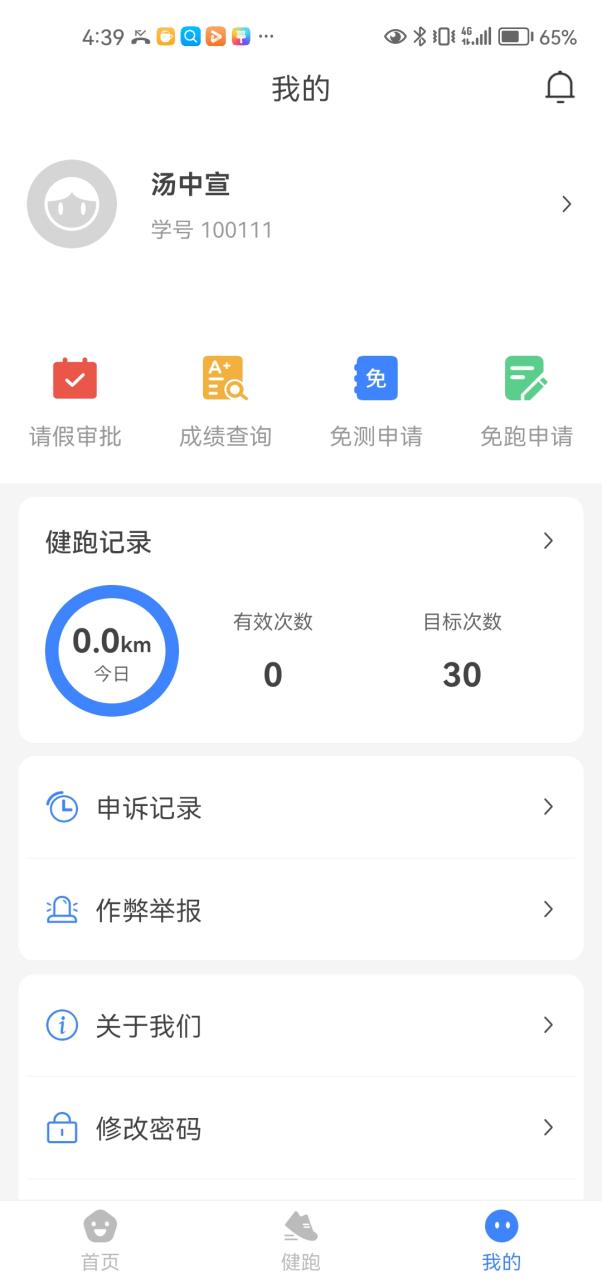 6、健跑记录查询:请点击“我的”菜单按钮进入页面查询该学期以及大学往年的健跑记录成绩如图以下: