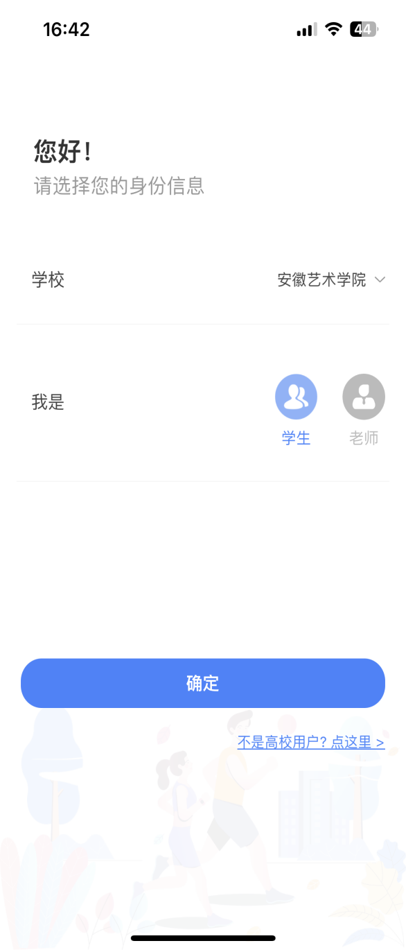 2、登录页面(请同学们选择自已的学校进行登录。用户名是自已的学号,密码默认是学号后六位,初次登录APP会提示更改自已的默认密码,请同学们一定要记住自己更改的密码。)