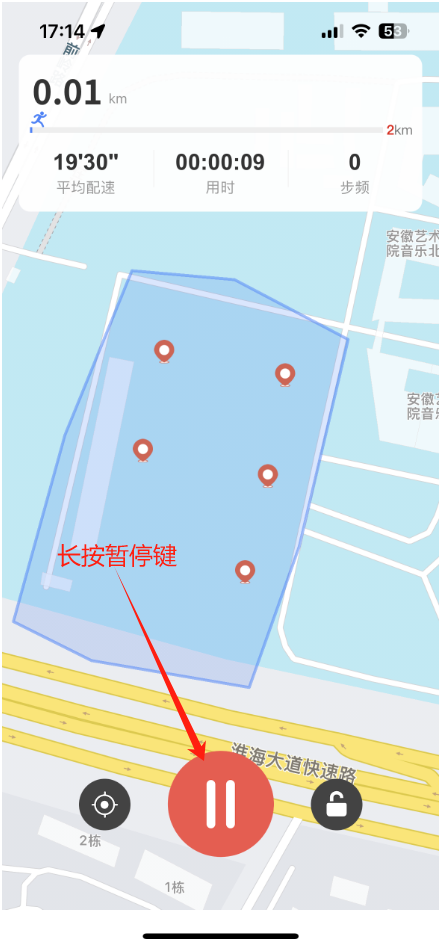 2.跑完打卡点以后,如果公里数不够,可以继续跑步;
