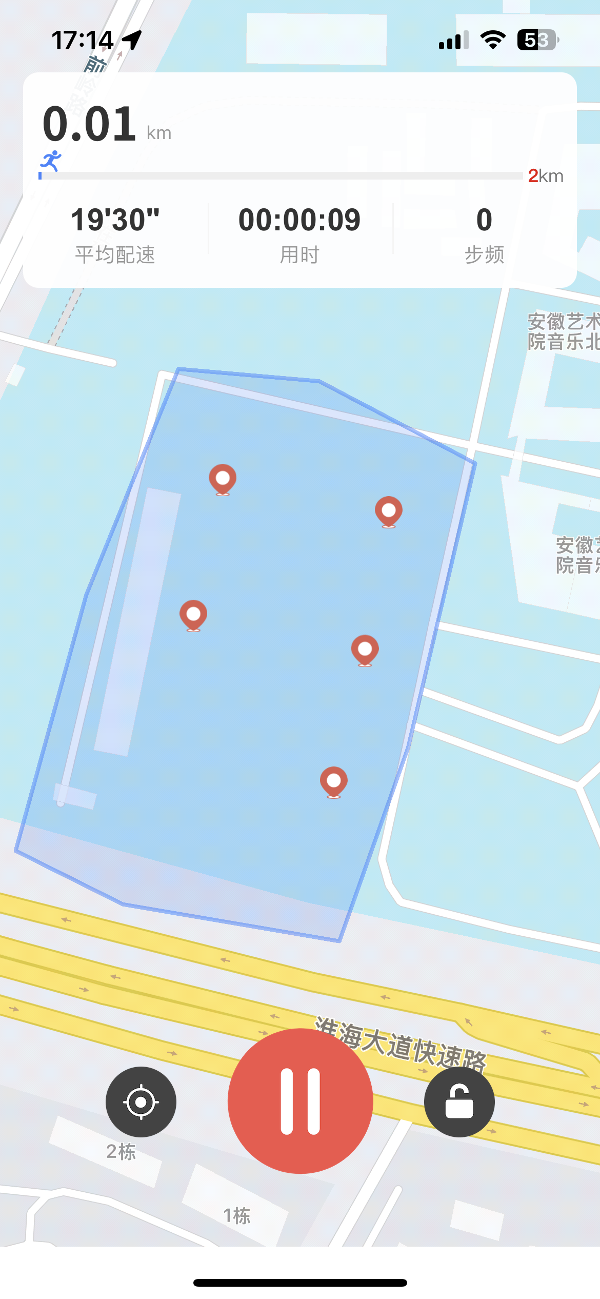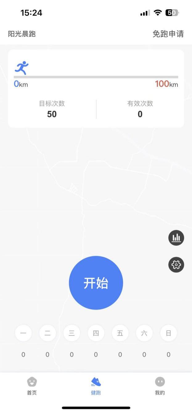 点击开始按钮之后会进入地图显示位置点,请同学们按照学校要求的路线进行跑步运动,如下图所示:
