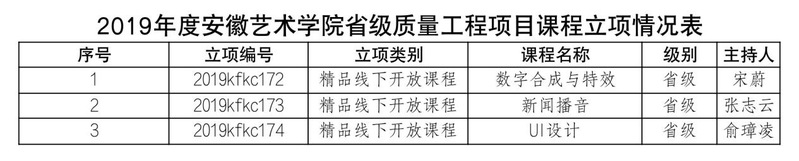 本次学校获批省级质量工程课程项目共计3项,均为精品线下开放课程类别。