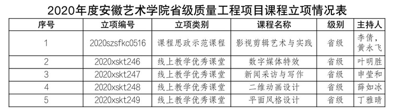 近日,安徽省教育厅公布了2020年度高等学校质量工程项目名单。