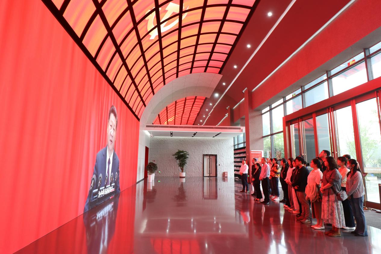 参观结束后,全体党员面向党旗,重温入党誓词,铿锵有力的誓言展现出不忘初心、牢记使命的信心和决心。