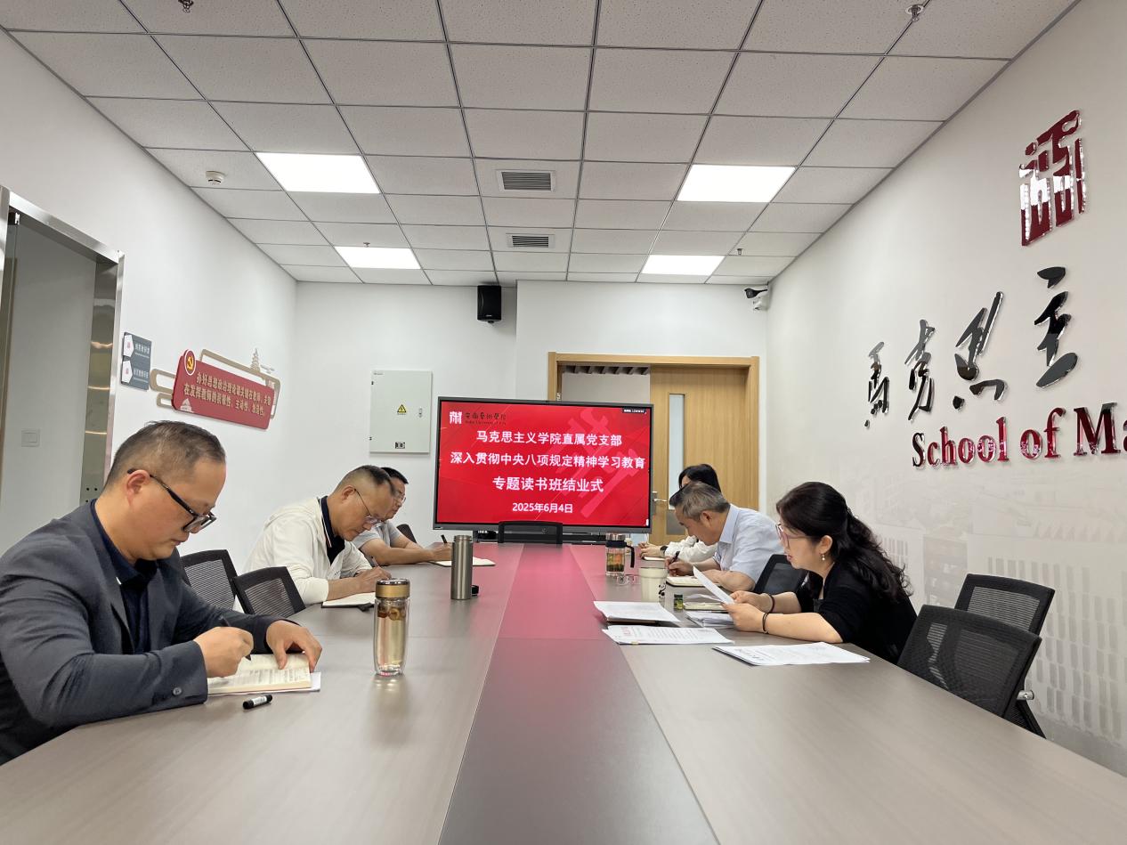 6月4日下午,马克思主义学院直属党支部在崇德楼721会议室举行深入贯彻中央八项规定精神学习教育专题读书班结业式。学院领导班子成员及支委成员参加。支部书记陈昀岚支持结业式。