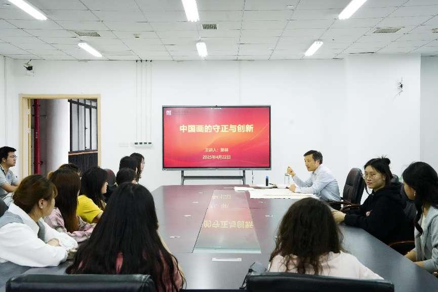 423日下午,校党委委员、副校长陈林以“中国画的守正与创新”为主题,在美术楼307会议室给美术学院2023级中国画1班学生上思政课。