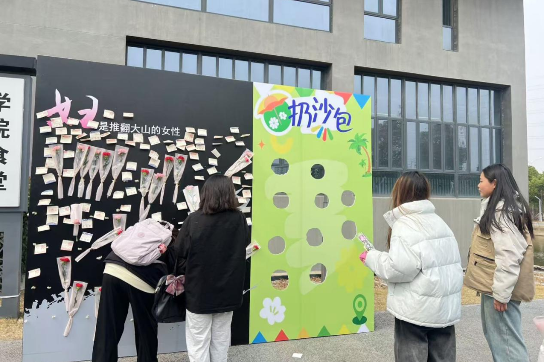 在“三八”国际妇女节来临之际,为弘扬时代精神,展现巾帼风采,设计学院学生会于3月7日中午在食堂门口开展了主题活动。
