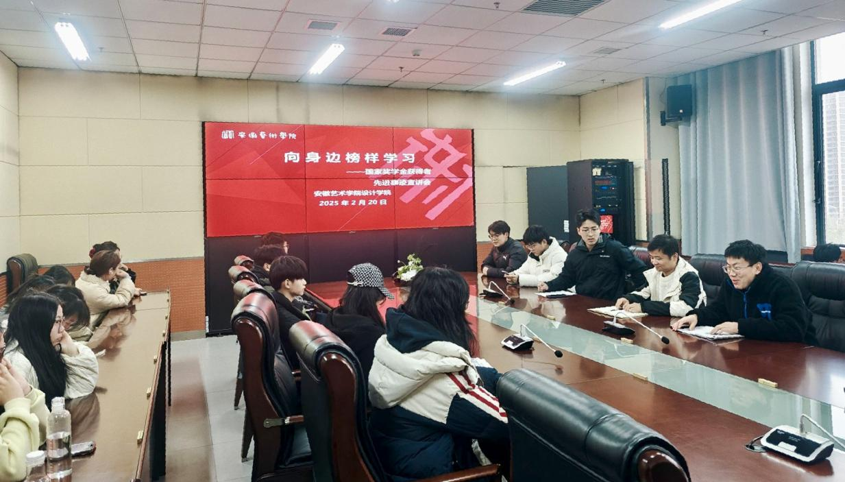 为发挥朋辈教育在学风建设中的引领作用,弘扬我院优秀学子的奋斗精神,激励全院学生砥砺前行、追求卓越,设计学院于2月20日下午在设计楼403会议室成功举办2023-2024学年国家奖学金、国家励志奖学金获得者先进事迹宣讲会。活动由学院学生管理工作办公室主办,设计学院团总支副书记王亚鹏出席,活动由学生党支部书记黄威主持。