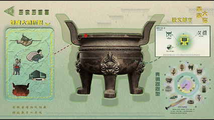 《鼎鼎大铭》以安徽博物院战国青铜器“铸客大鼎”为对象,针对传统展陈中铭文细节模糊、互动性不足等问题,提出“文化+科技”数字化交互解决方案。整个作品围绕“触屏识文物,光影讲故事”展开,通过信息可视化设计、三维建模、动态动画及Unity交互开发技术,...