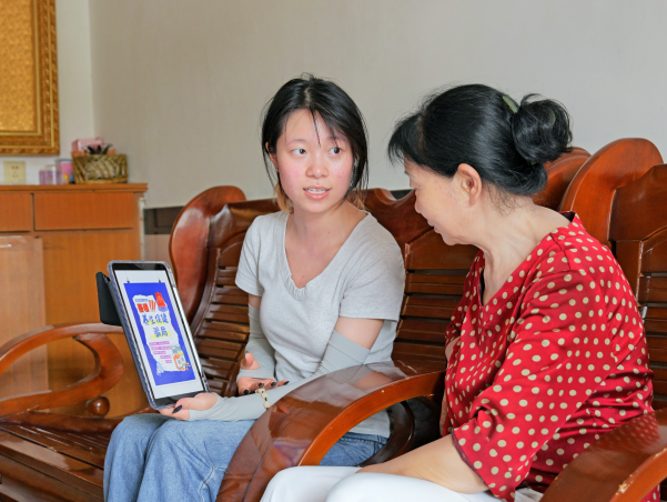 上午,针对乡村“一老一小”群体的关爱活动率先展开,设计学院与校妇联的师生们分工协作,用专业与热情传递温暖。设计学院学生主动为老年人开展普法宣传,用通俗易懂的语言讲解与日常生活密切相关的法律知识,帮助老年人增强法治意识;同时,学生们拿起相机为村里的老年人及家庭拍摄人像照片,用镜头定格幸福瞬间,留下美好回忆。
