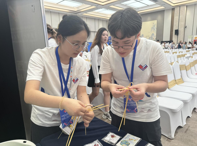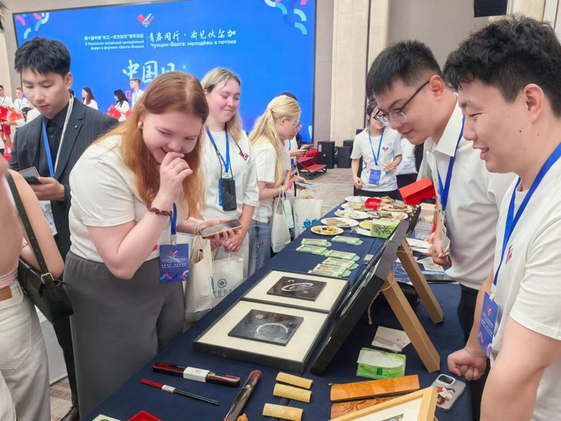 我院师生充分展示了安徽非遗传统技艺的魅力。在“中国日”主题活动中,我院非遗专业师生向出席嘉宾详细介绍了庐州扇艺、徽州竹雕竹编、传统漆艺等非遗文化,用竹编技艺与俄罗斯青年互织友谊,并将竹编画作和大漆工艺品作为安徽代表团的外交礼物赠予俄罗斯总统驻伏尔加河沿岸联邦区副全权代表马什科夫采夫先生,为本次活动中安徽代表团的文化交流工作做出了重要的贡献。