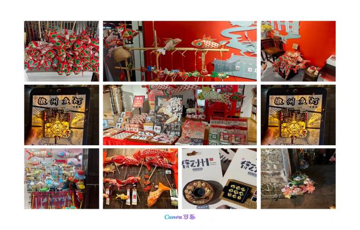 在采访过程中,团队成员还了解到,近年来,随着乡村振兴战略的实施,歙县的非遗鱼灯文化得到了更多的关注和支持。当地政府通过举办鱼灯节、开展非遗传承培训等方式,不仅让鱼灯这一古老的艺术形式得以传承和发展,还吸引了大量游客前来观赏,为乡村经济发展注入了新的动力。同时,以鱼灯为原型各类文创也是琳琅满目,既深受游客们的喜爱,也便利了鱼灯的传播,更提高了当地民众的收入,成为了徽州鱼灯传承的新载体。一些村民也通过制作和销售鱼灯手工艺品,增加了收入,改善了生活。
